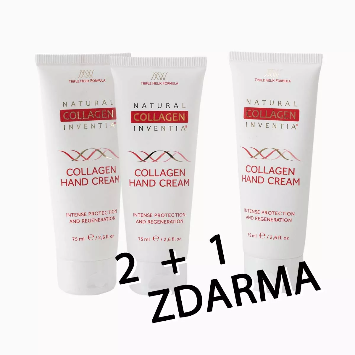 Krém na ruce s živým kolagenem je k dispozici samostatně i ve výhodném balíčku 2 + 1 zdarma. Ideální řešení pro kabelku, domov i kancelář – nebo jako praktický a elegantní dárek.