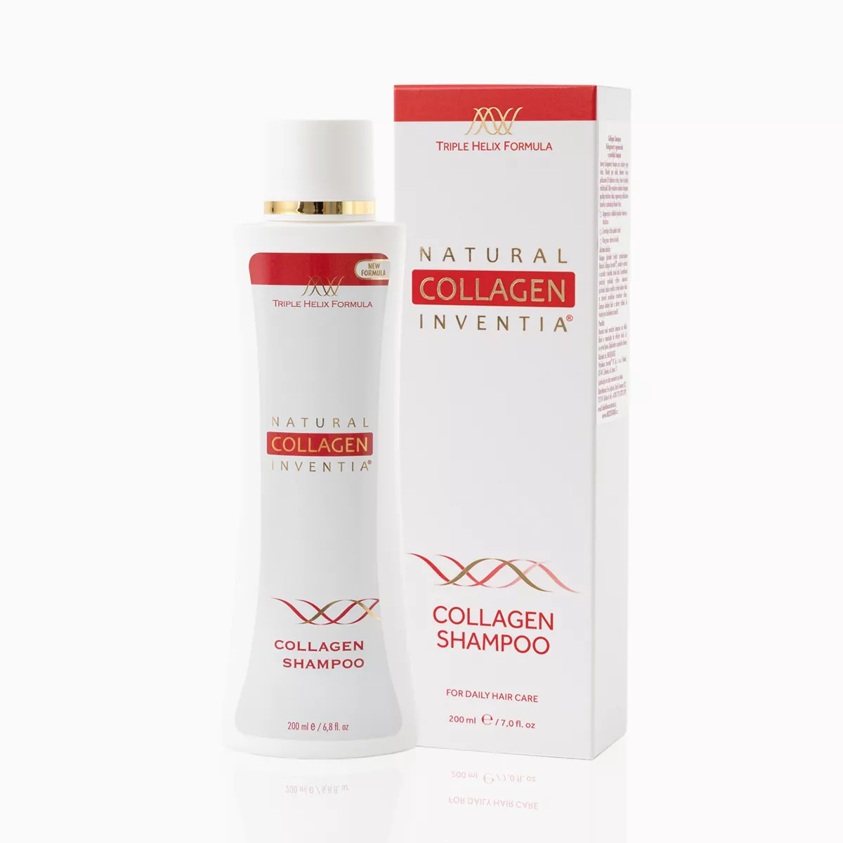 Výjimečná receptura šamponu s omlazujícím a regeneračním Přírodním kolagenem Inventia®, elastinem a s výtažky z hedvábí a medu zaručuje vlasům v jediném kroku šetrné mytí, hydrataci a výživu. Díky vysokému obsahu „živého“ kolagenu šampon posiluje strukturu vlasů, regeneruje poškozené konečky a předchází jejich třepení. Dodává vlasům objem, pružnost a lesk.