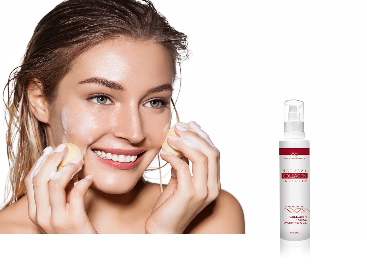 Speciální, velmi jemný mycí kolagenový gel na obličej, krk a dekolt je vhodný pro velmi šetrné a dokonalé mytí všech typu ženské a mužské pokožky. Lze ho používat i na mytí citlivé pokožky obličeje a těla, při akné, atopickém ekzému a u nejcitlivější pokožky malých dětí. Neobsahuje mycí látky ze skupiny SLS a splňuje i nejpřísnější kritéria testů in vitro „Red-Blood-Cell" na výrobu kojenecké kosmetiky. Čistí, zklidňuje a zjemňuje citlivou, unavenou a podrážděnou pleť, navrací jí pružnost, svěžest a zdravý vzhled. Šetrně odstraňuje z pleti všechny zbytky nečistot, voděodolného make-upu i nadměrného mazu.